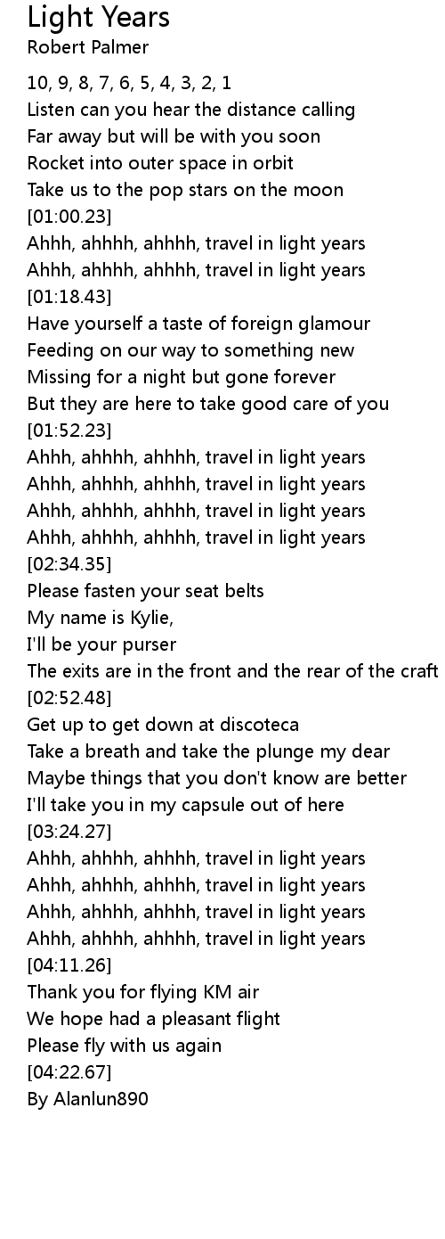 Ahhh, ahhhh, ahhhh, travel in light years |