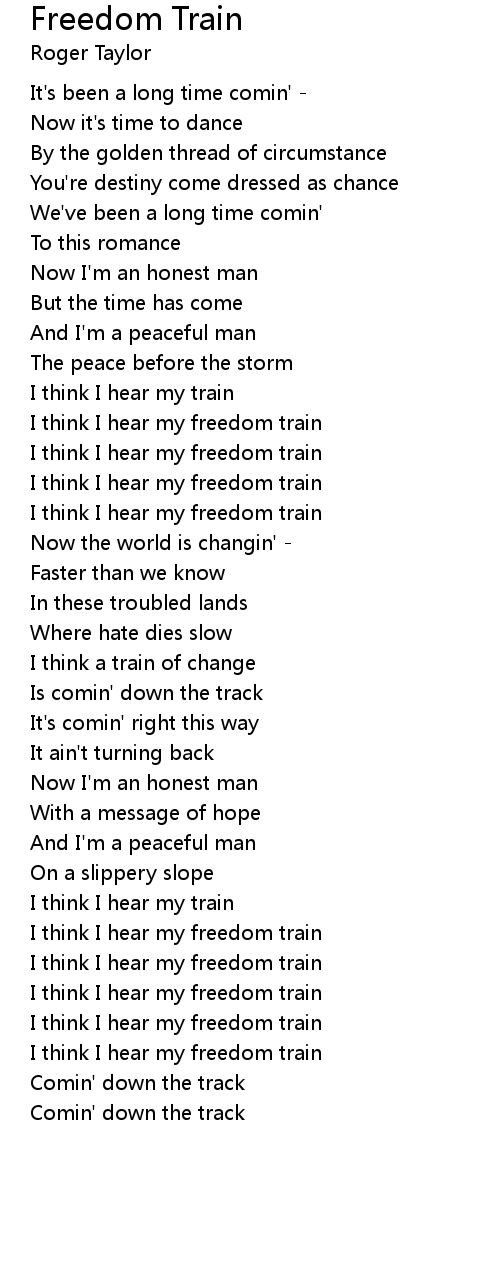 I think I hear my freedom train |
