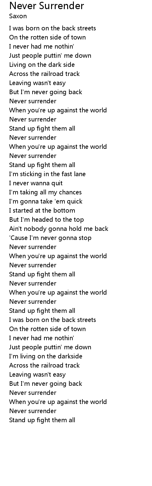 Never surrender |