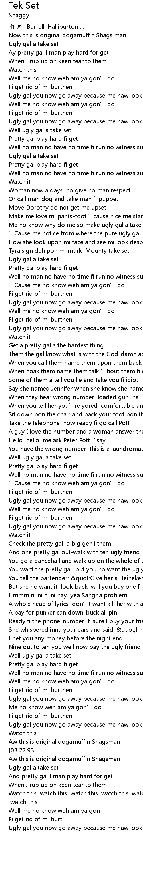 | [03:54.10] | Ugly gal you now go away because me naw look oh n |
