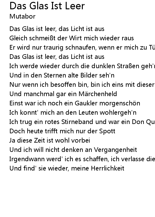 | Das Glas ist leer, das Licht ist aus | |