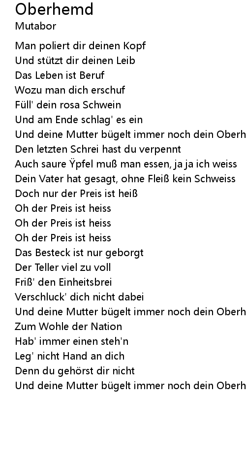 | Und deine Mutter bü gelt immer noch dein Oberhemd ... |