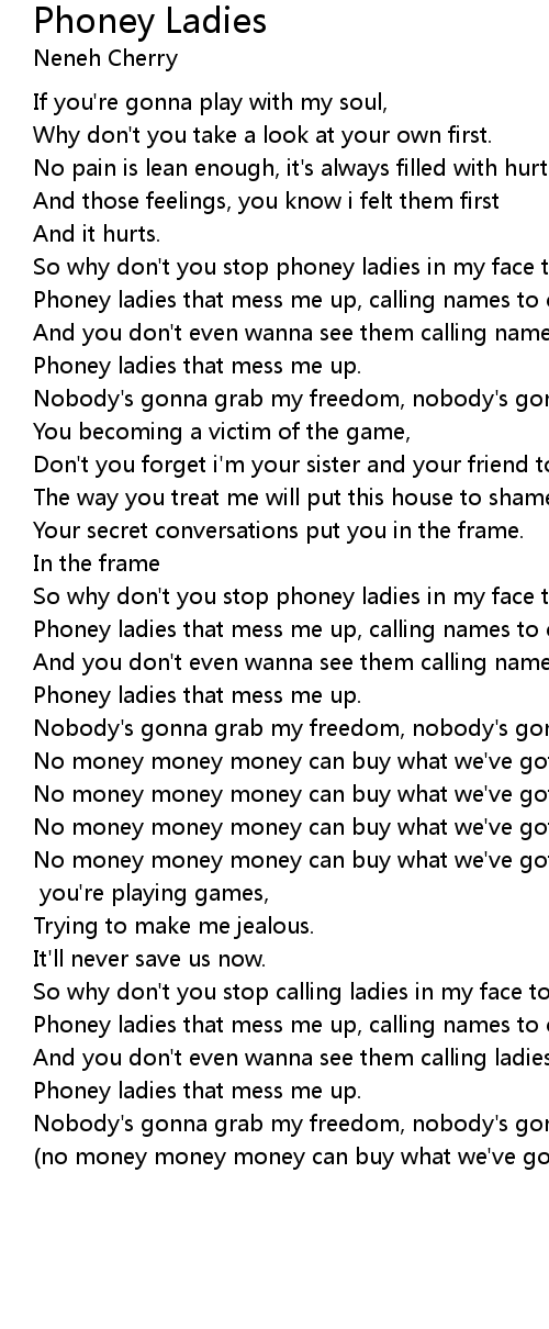 Phoney ladies that mess me up, calling names to cramp my freedom |
