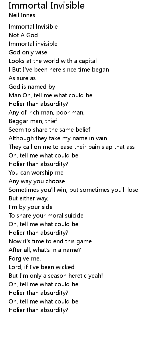 Immortal invisible |
