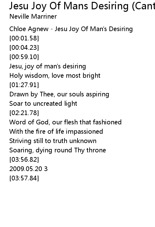 | [00:01.02] | Chloe Agnew - Jesu Joy Of Man's Desiring |