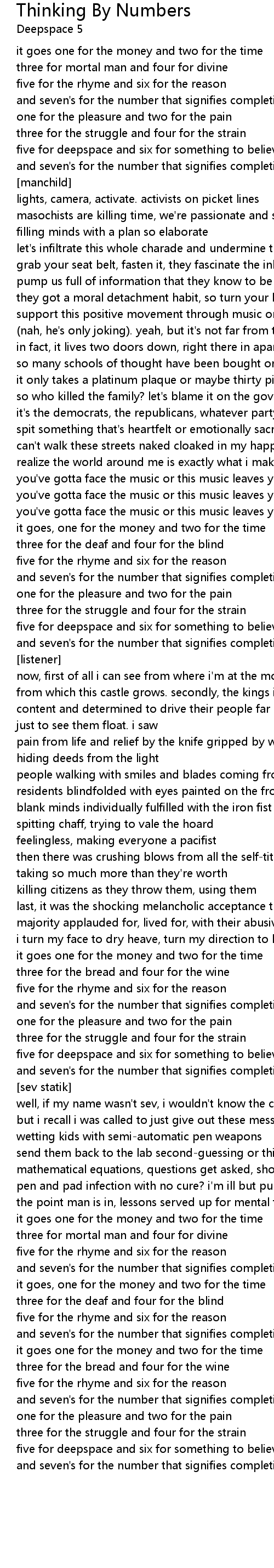 five for the rhyme and six for the reason |