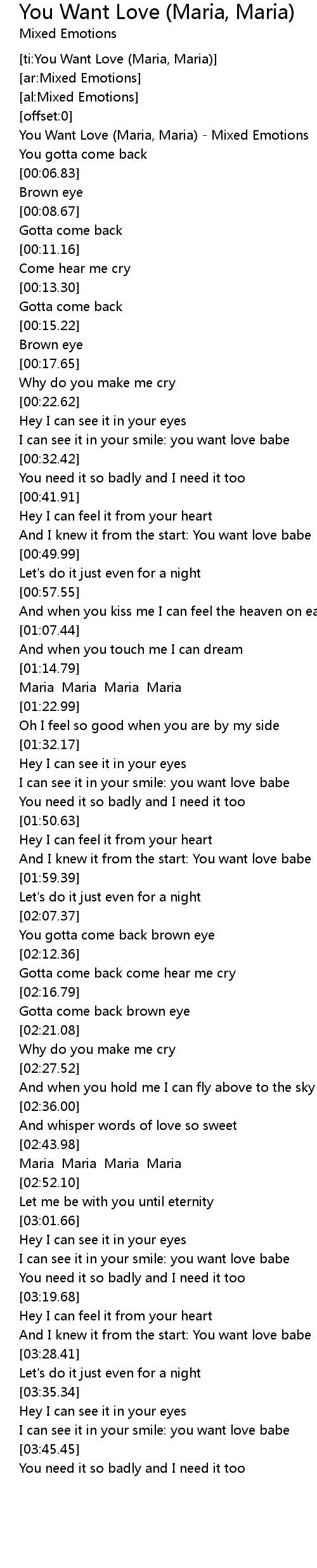 You Want Love (Maria, Maria) - Mixed Emotions |