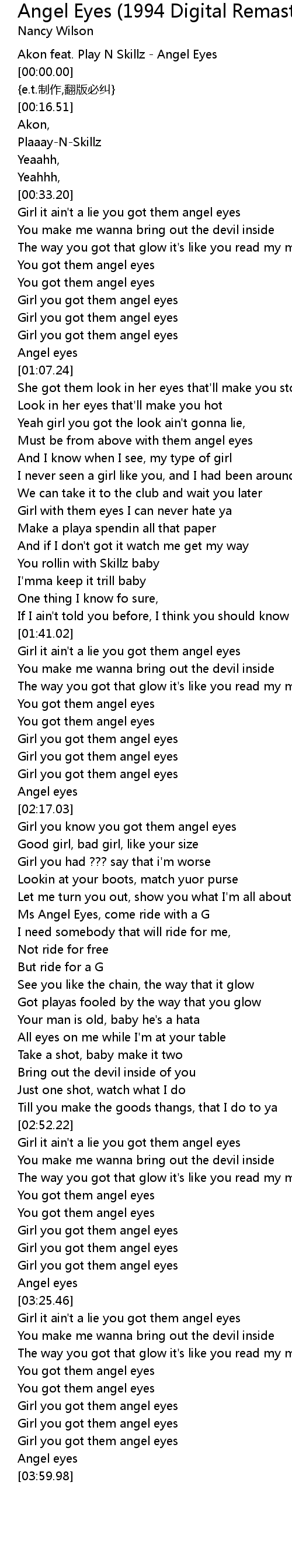 | [02:52.46] | Girl it ain' t a lie you got them angel eyes |
