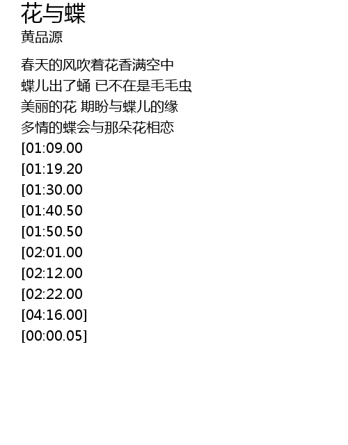 | [00:48.00] | 美丽的花 期盼与蝶儿的缘 |