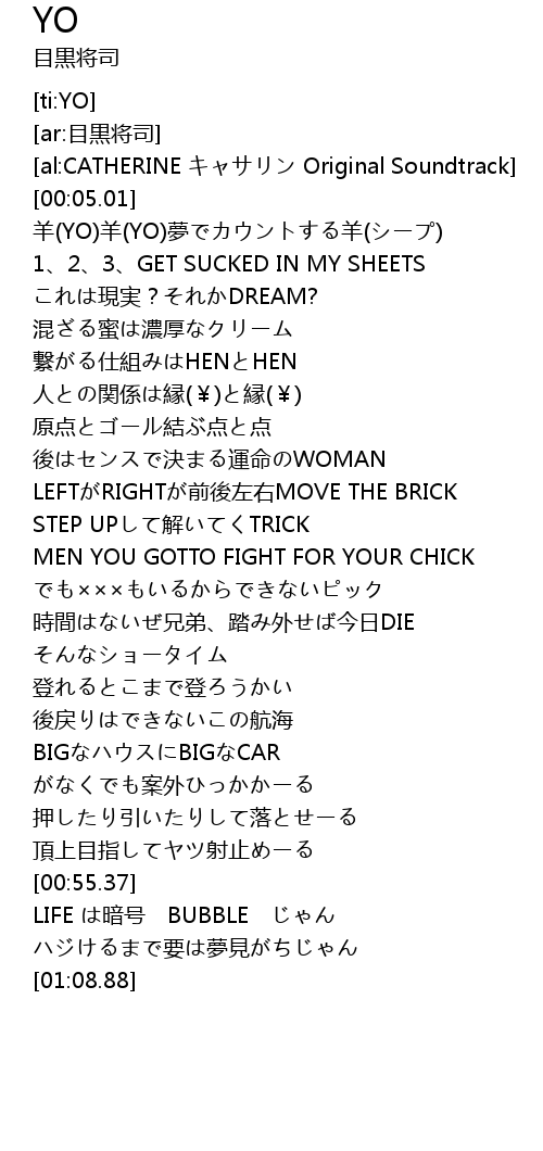 | [00:11.66] | 1 2 3 GET SUCKED IN MY SHEETS |