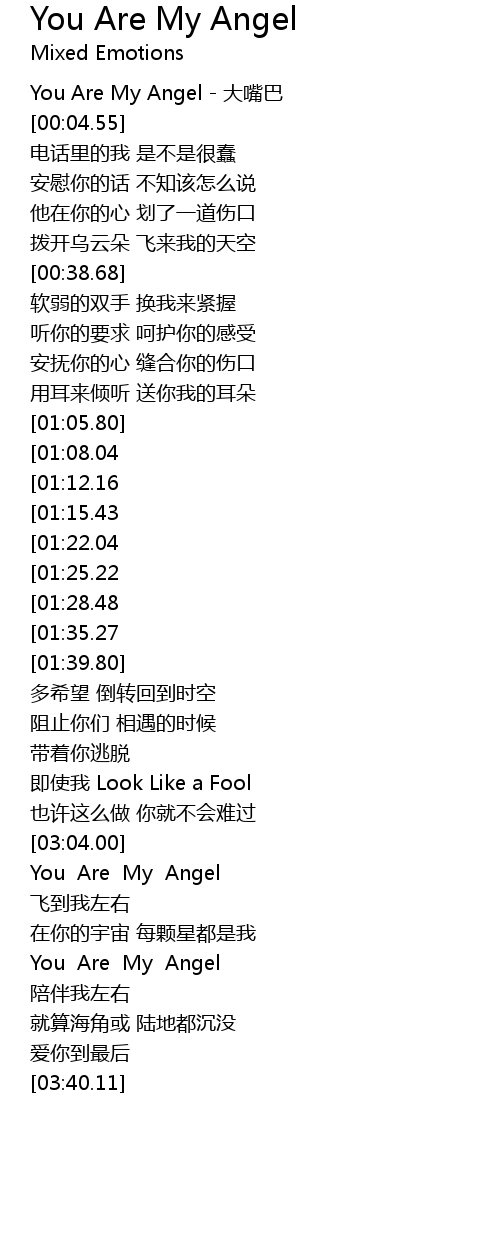 | [00:00.63] | You Are My Angel - 大嘴巴 |