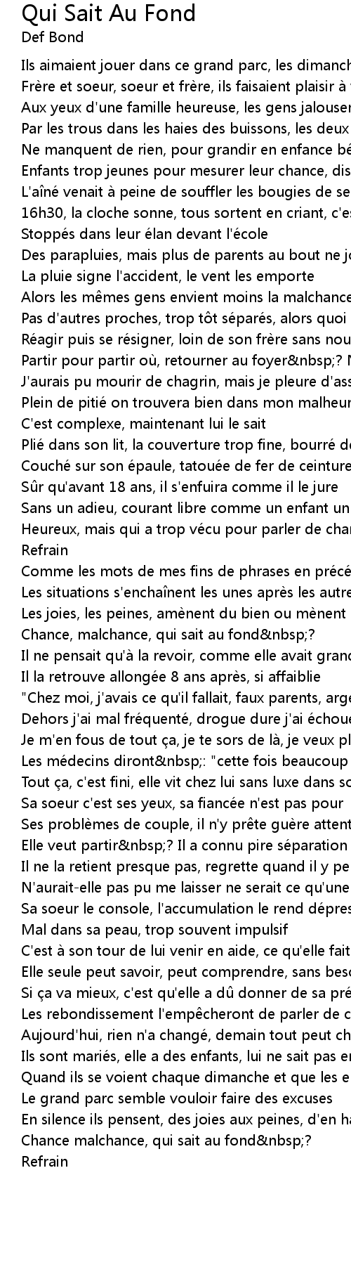 | N' auraitelle pas pu me laisser ne serait ce qu' une chance | |