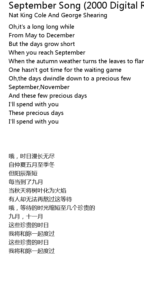 | [01:00.490] | When the autumn weather turns the leaves to flame |