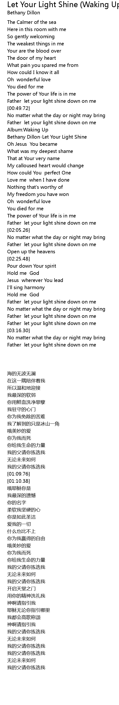 [00:47.41] Father let your light shine down on me