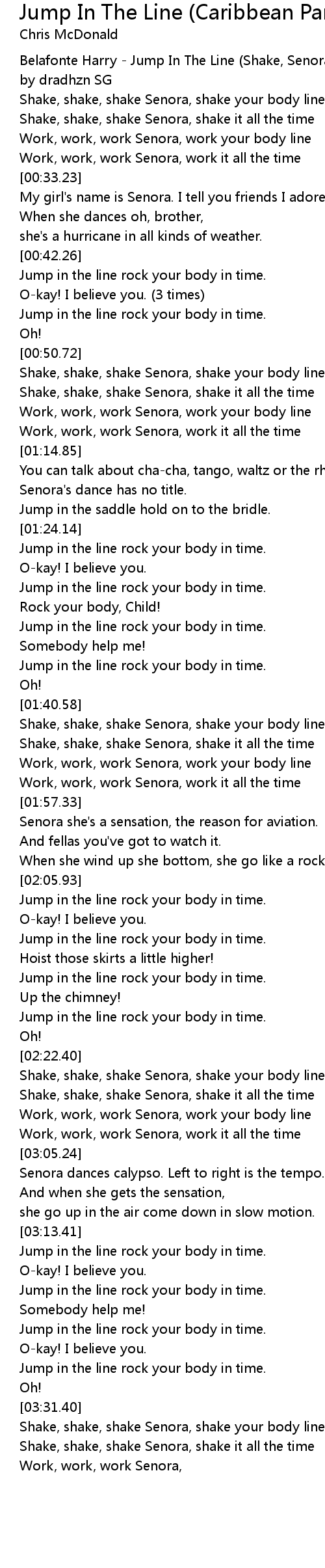 [00:05.37] Belafonte Harry - Jump In The Line (Shake, Senora) : .