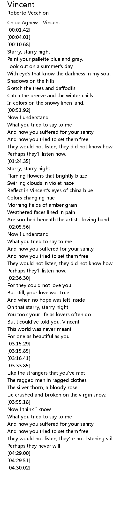 Chloe Agnew - Vincent |