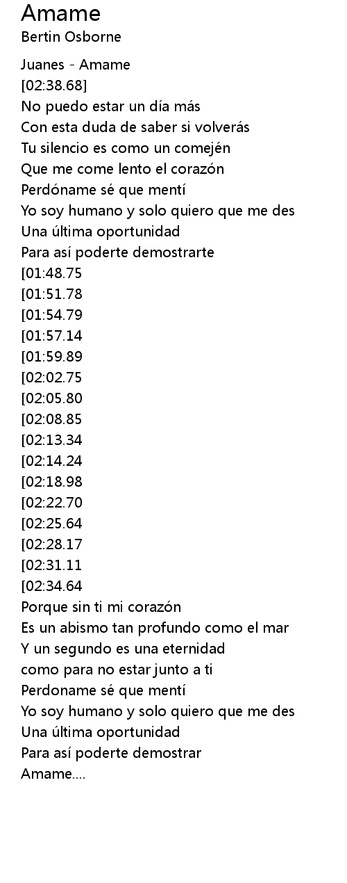 | [03:27.09][02:14.24][01:00.50] | Amame por ma s que quieras otra vez |