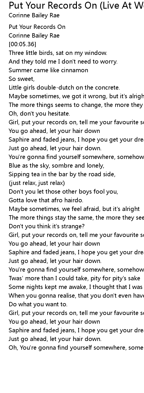[00:48.01] Girl, put your records on, tell me your favourite song
