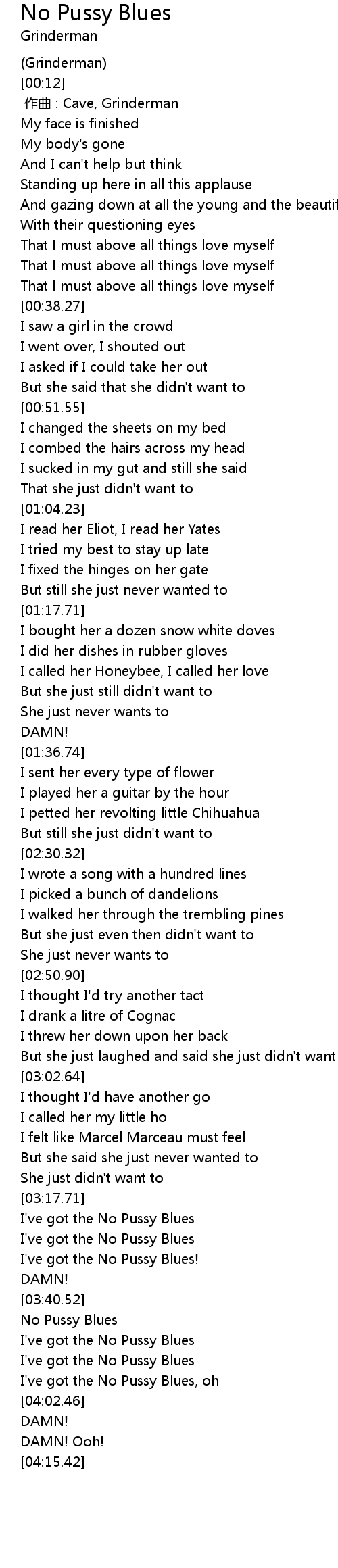 | [03:20.41] | I' ve got the No Pussy Blues |