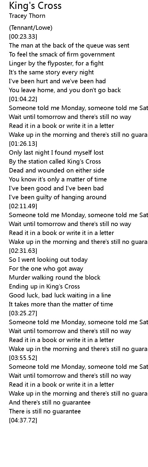 [04:00.14] Someone told me Monday, someone told me Saturday
