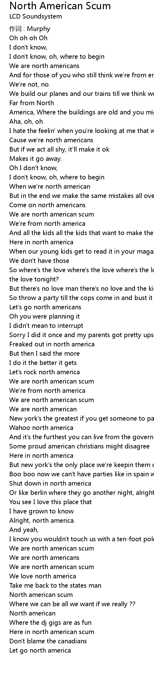 | I know you wouldn' t touch us with a tenfoot pole ' cause we' re north americans. | |