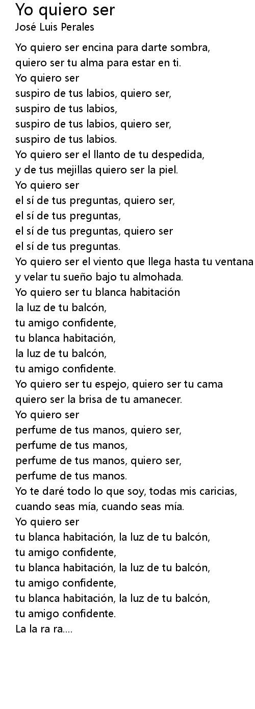 | Yo quiero ser tu espejo, quiero ser tu cama | |