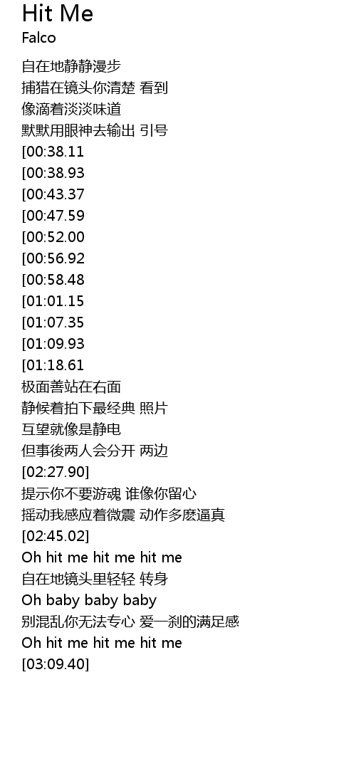 | [02:09.81][00:58.48] | Oh hit me hit me hit me |