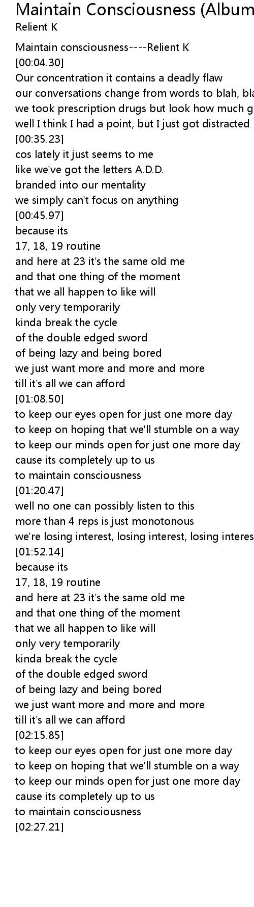 | [00:01.82] | Maintain consciousness----Relient K |