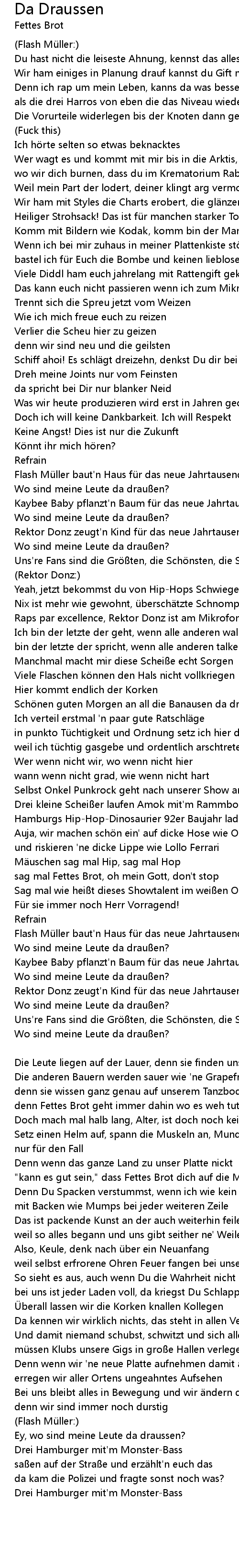 | sag mal Fettes Brot, oh mein Gott, don' t stop | |