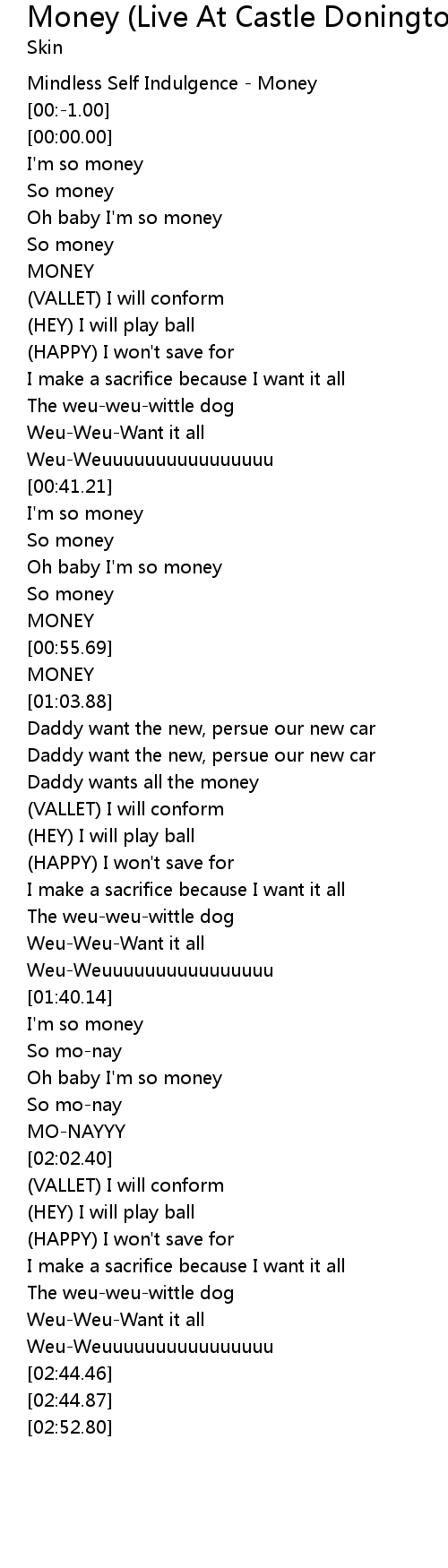 Money (Live At Castle Donington, 6th June 1994) Lyrics