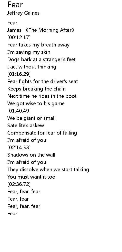 | [01:04.49] | Dogs bark at a stranger' s feet |