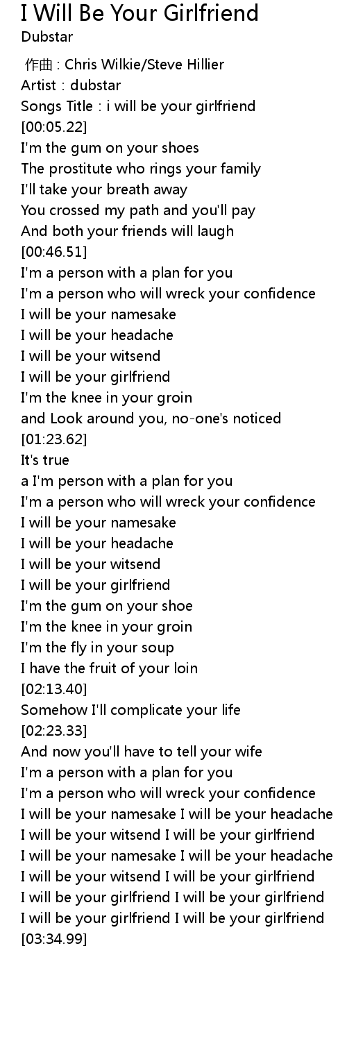 | [00:02.20] | Songs Title: i will be your girlfriend |