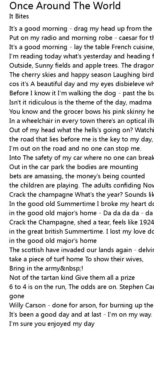 Before I know it I'm walking the dog - past the butcher's past the store |