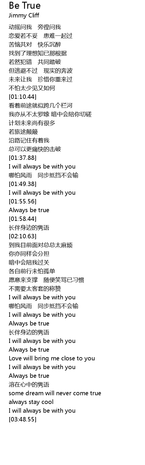 | [03:03.63] | Always be true |
