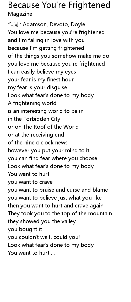 | Song | Because You're Frightened |