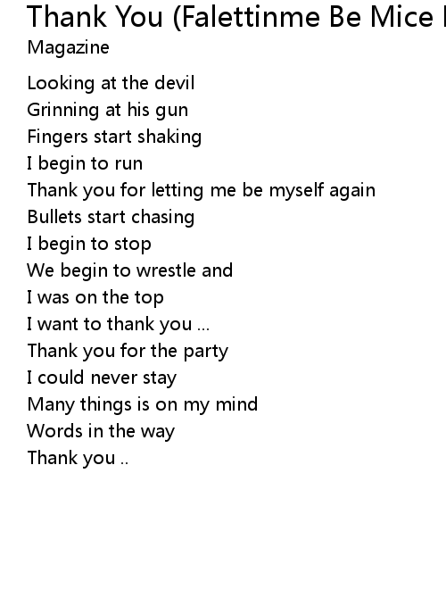 | Song | Thank You (Falettinme Be Mice Elf Agin) |