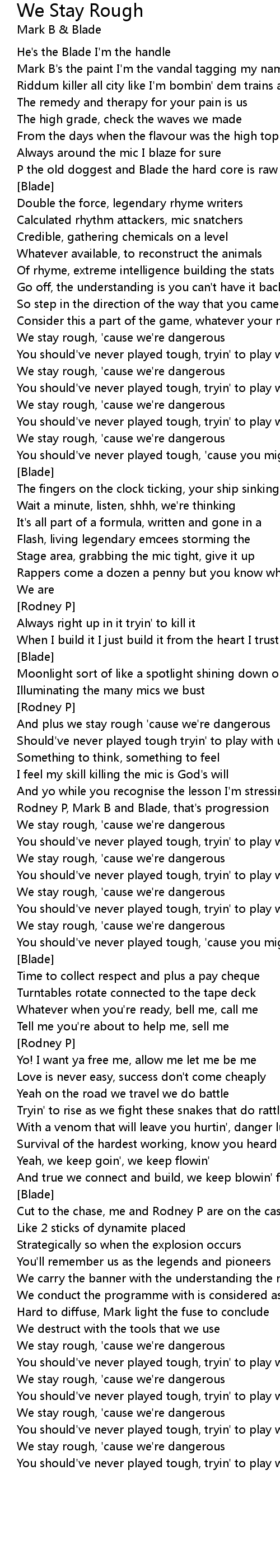 And plus we stay rough 'cause we're dangerous |