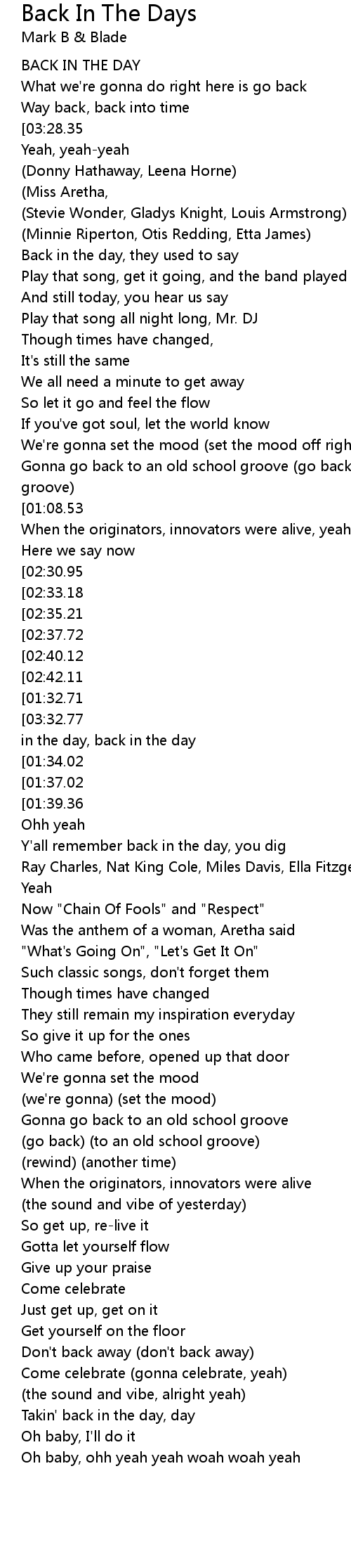 Takin' back in the day, day |