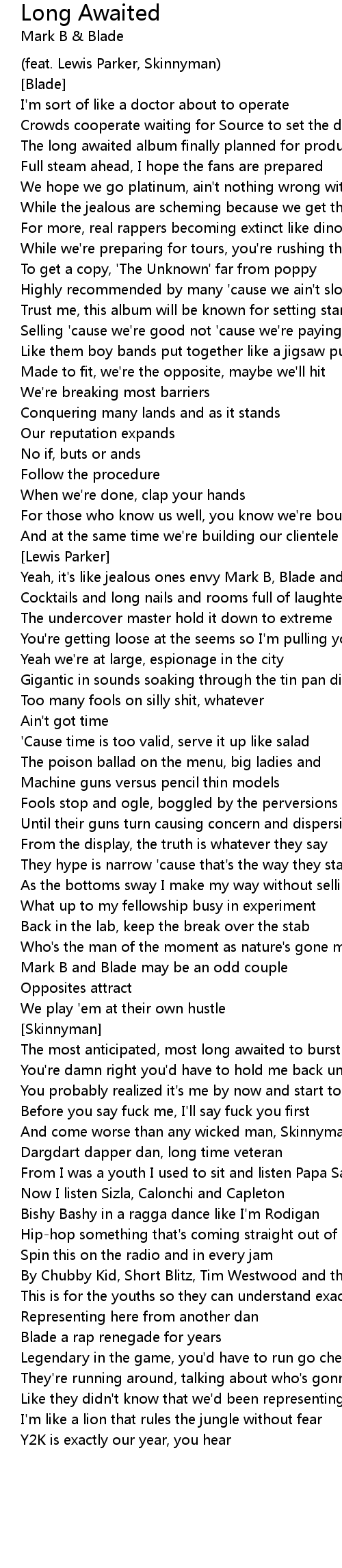 (feat. Lewis Parker, Skinnyman) |