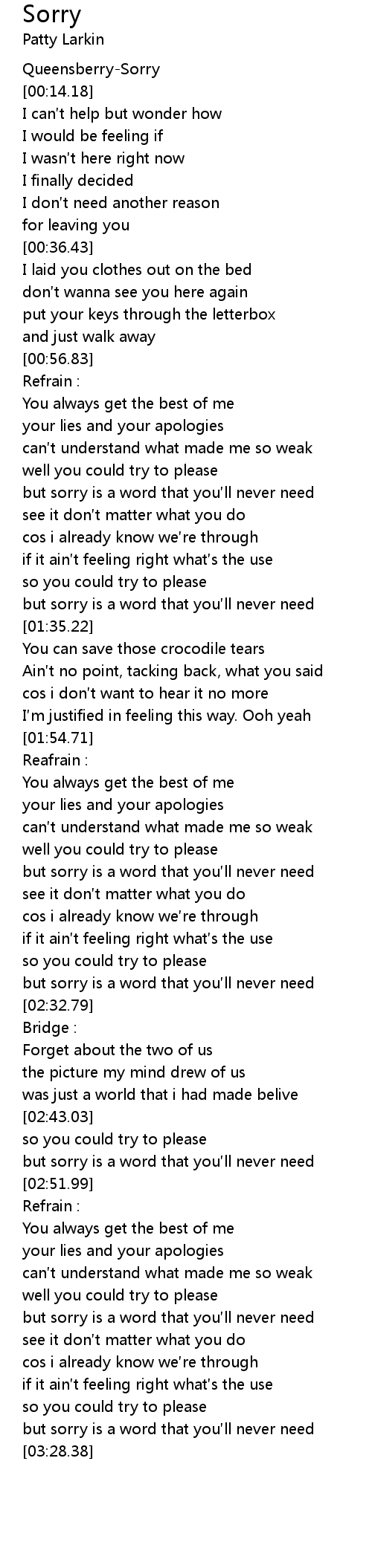 | [03:24.31] | but sorry is a word that you ll never need |