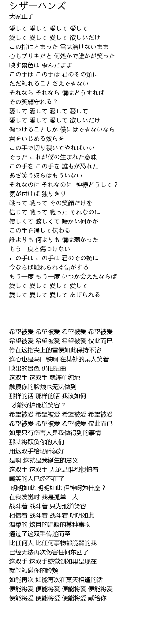 愛して 愛して 愛して あげられる |