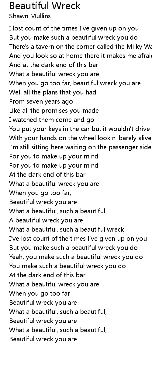 What a beautiful wreck you are |