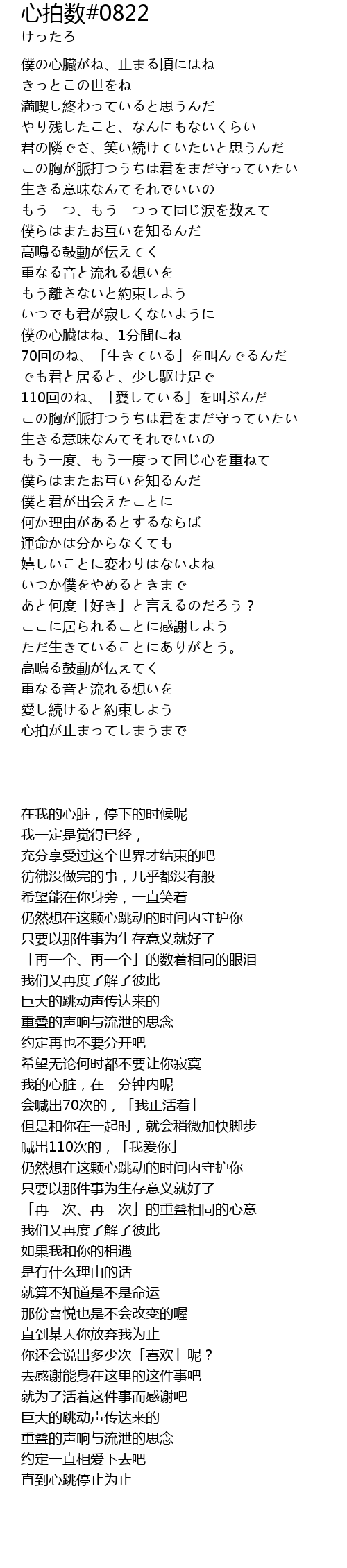 | [02:03.579] | 僕の心臓はね、1分間にね |