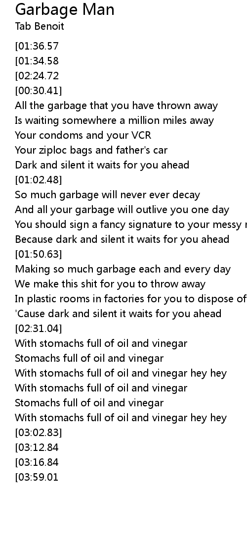 | [01:52.14] | Making so much garbage each and every day |
