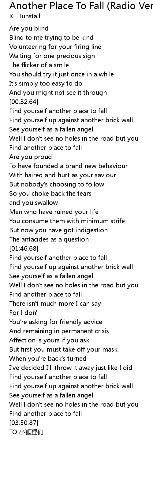 | [01:13.62] | Well I don' t see no holes in the road but you |