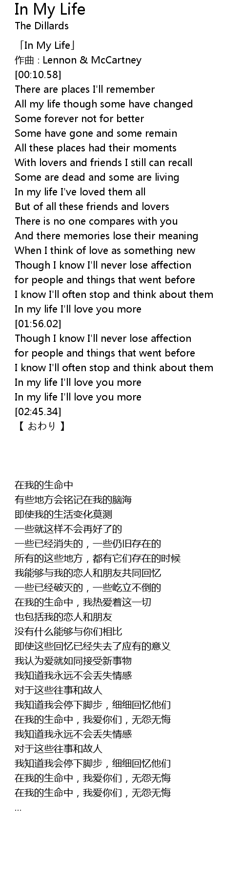 | [02:39.29] | In my life I'll love you more |