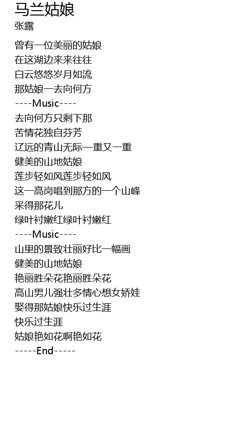 | [00:13.06] | 曾有一位美丽的姑娘 |