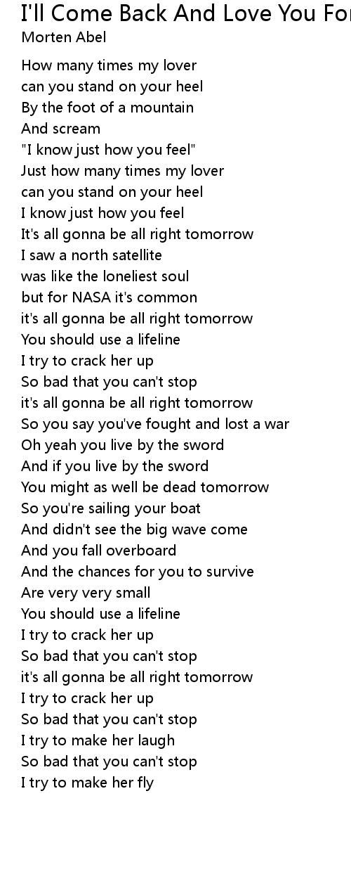It's all gonna be all right tomorrow |