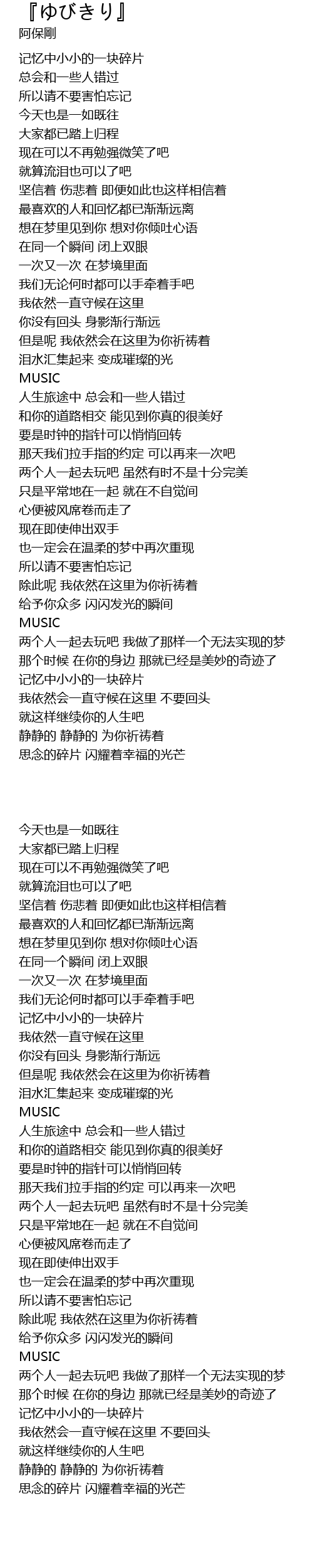| [03:31.700] | 除此呢 我依然在这里为你祈祷着 |