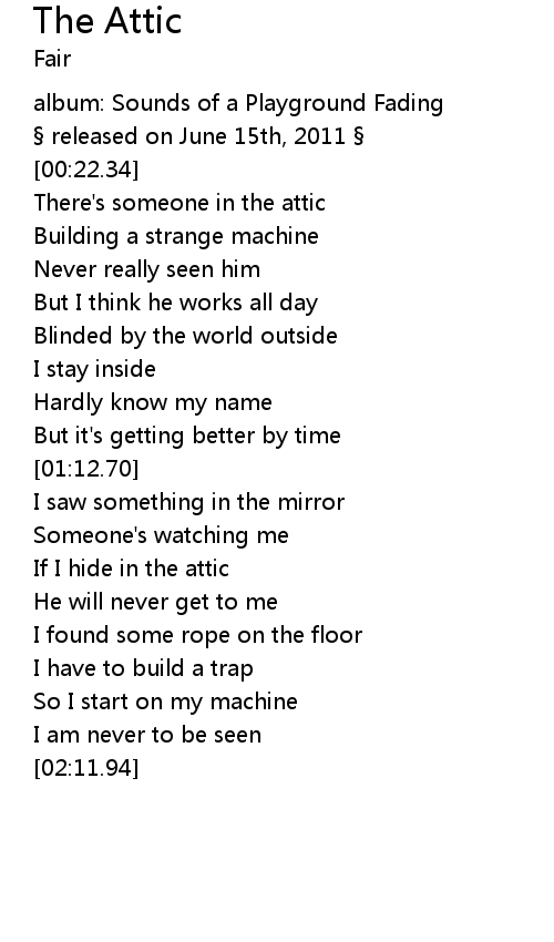 | [00:07.39] | album: Sounds of a Playground Fading |